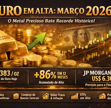 Com o cenário macro mais incerto desde 2022, o ouro deixou de ser apenas “investimento de vovó” e virou protagonista das carteiras modernas. Quem posicionou-se cedo em 2025 já colheu +67%. Em março 2026 ainda dá tempo — mas com disciplina.
